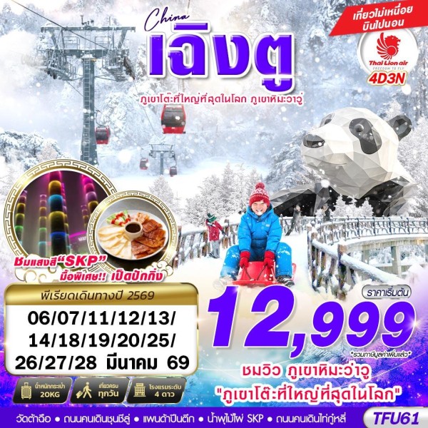 ทัวร์เฉิงตู ภูเขาหิมะวาวู่ บินไปนอน 4 วัน 3 คืน