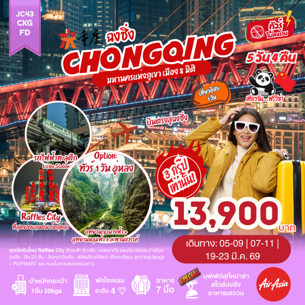 จีน 2 มหานคร ฉงชิ่ง เฉิงตู เขาสี่ดรุณี กาเซียร์ 12-19 เม.ย.68