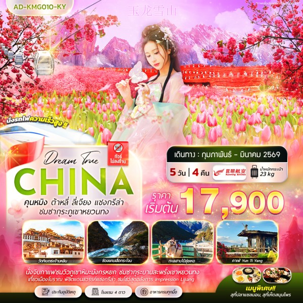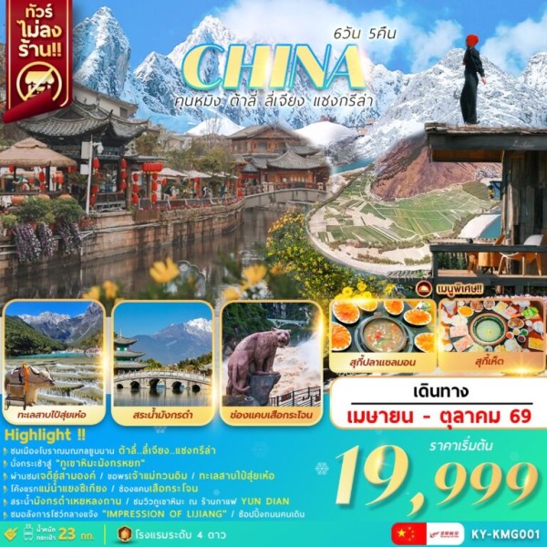 • ทัวร์จีน มหัศจรรย์...คุนหมิง ต้าหลี่ ลี่เจียง แชงกรีล่า (นั่งรถไฟความเร็วสูง-ไม่ลงร้าน)