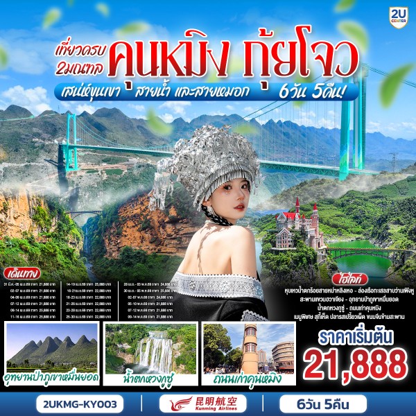• ทัวร์คุนหมิง กุ้ยโจว เที่ยวครบ 2 มณฑล เสน่ห์ขุนเขา สายน้ำ และสายหมอก *ทัวร์ไม่ลงร้าน*