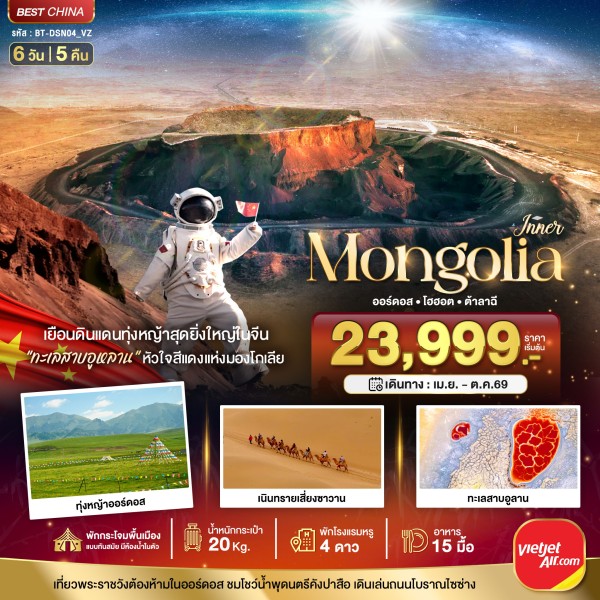 • ทัวร์จีน มหัศจรรย์...มองโกเลียใน ออร์ดอส ฉาหยูโฮ่วฉี ฮูฮอต ต้าลาฉี (บินตรง)
