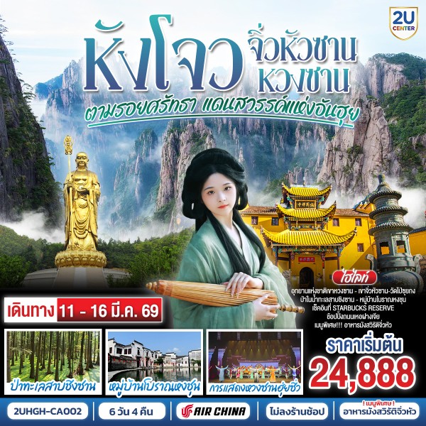 ทัวร์จีน บินตรงหวงซาน หุบเขาเทวดาวั่งเซียนกู่ หมู่บ้านโบราณหวงหลิ่ง หมู่บ้านโบราณหงชุน 6 วัน 5 คืน
