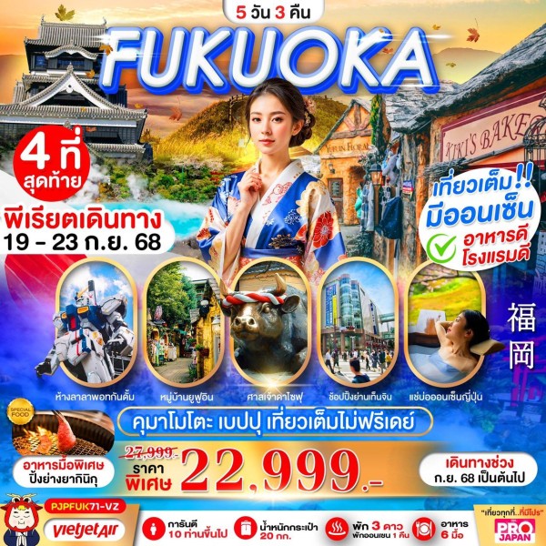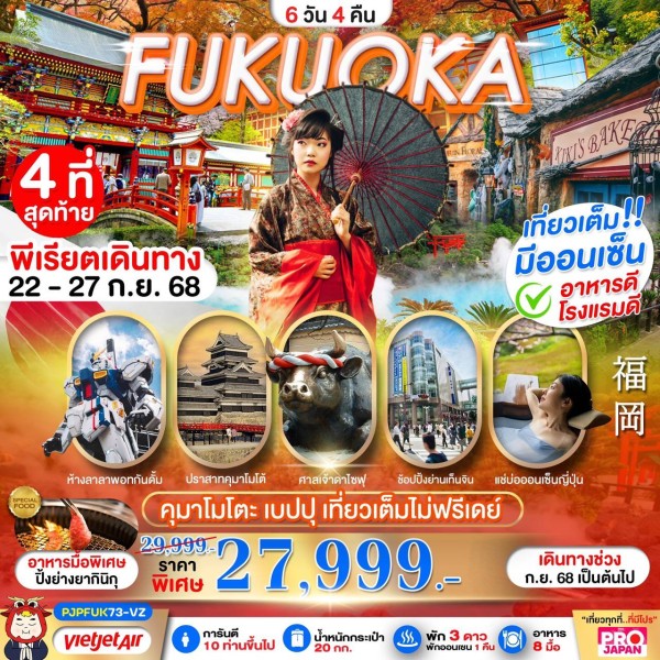 • ทัวร์ญี่ปุ่น FUKUOKA KUMAMOTO BEPPU 5D3N (เที่ยวเต็ม ไม่มีฟรีเดย์)