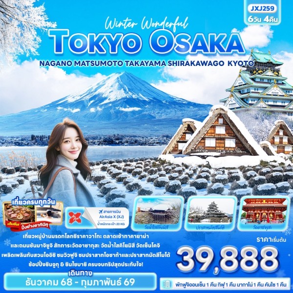 • ทัวร์ญี่ปุ่น Winter Wonderful TOKYO OSAKA NAGANO MATSUMOTO TAKAYAMA SHIRAKAWAGO KYOTO
