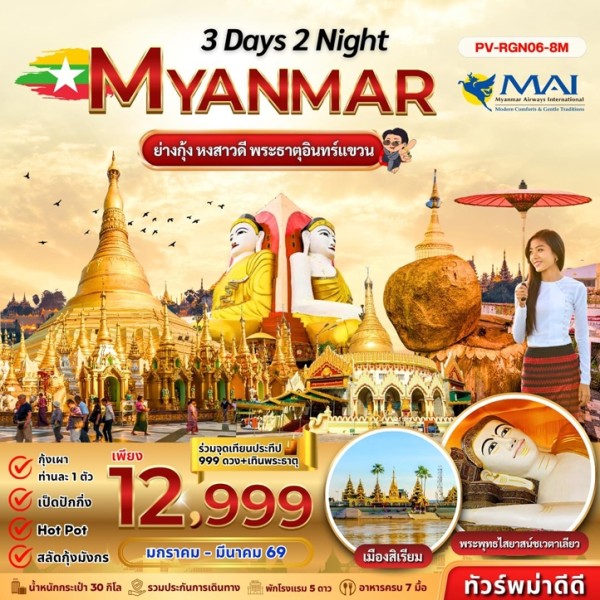• ทัวร์พม่า มหัศจรรย์..MYANMAR ย่างกุ้ง หงสา สักการะมหาบูชาสถานอันศักดิ์สิทธิ์ ที่ต้องห้ามพลาด!!