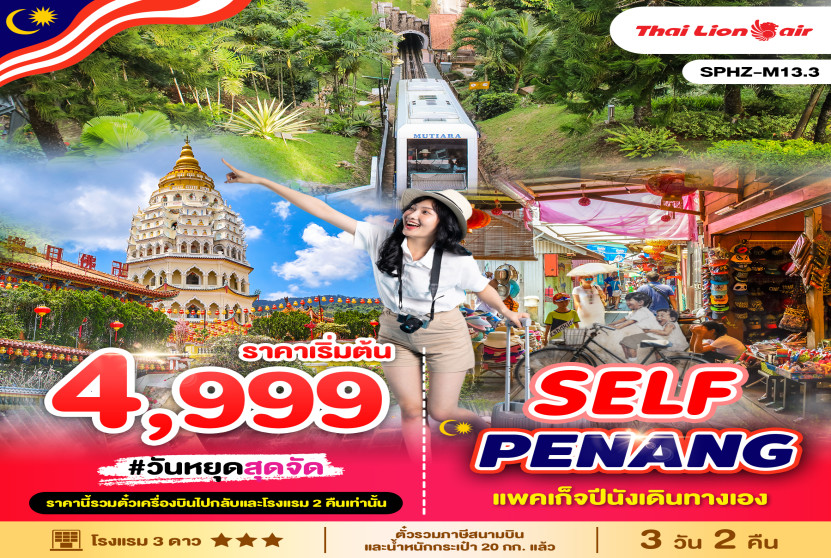 แพ็คเกจ มาเลเซีย SELF PENANG ตั๋วเครื่องบิน THAI LION AIR (SL)