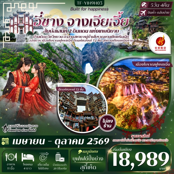 • ทัวร์อี๋ชาง จางเจียเจี้ย หมู่บ้านซานเซียเหรินเจีย ฝูหรงเจิ้ง อุทยานเทียนเหมินซาน ประตูสวรรค์ ทัวร์ไม่ลงร้าน
