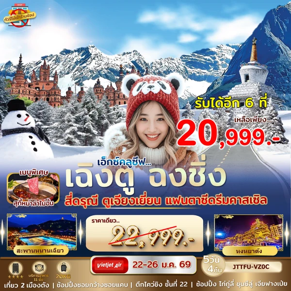 จีน 2 มหานคร ฉงชิ่ง เฉิงตู เขาสี่ดรุณี กาเซียร์ 12-19 เม.ย.68