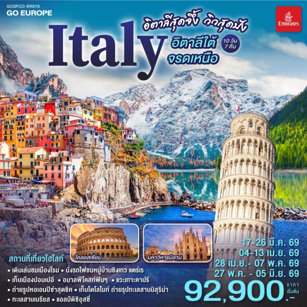 • ทัวร์ อิตาลี ITALY LAKE LOVER โดยสายการบิน QATAR (QR)