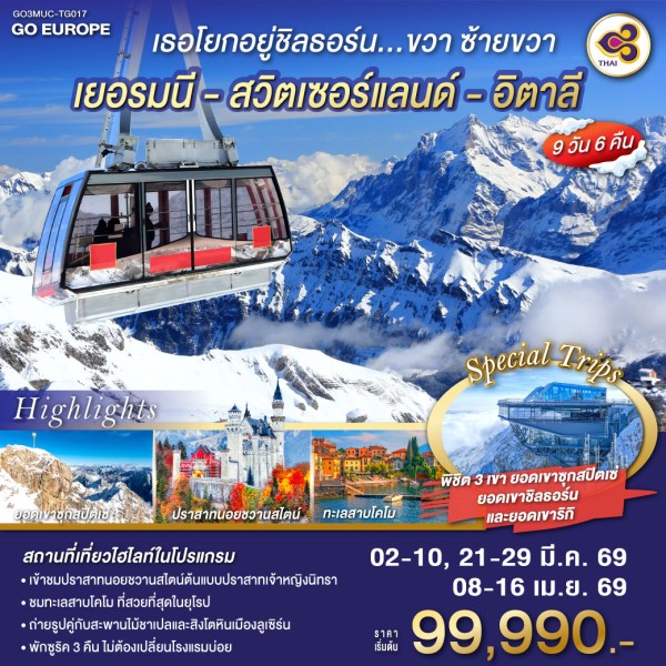 • ยุโรป : สวิส-เยอรมัน-ออสเตรีย-อิตาลี 9วัน 7คืน