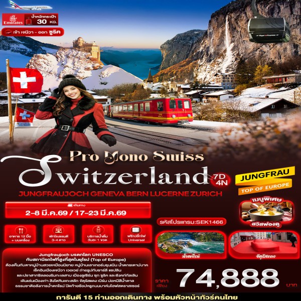 • ทัวร์ยุโรป Pro Mono Swiss Switzerland JUNGFRAUJOCH GENEVA BERN LUCERN ZURICH
