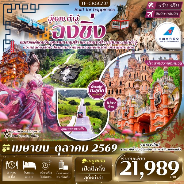• TF-CKGCZ07 ฉงชิ่ง-อู่หลง-ต้าจู๋ ปราสาทฮวาเซิงหยวน นั่งกระเช้าข้ามแม่น้ำแยงซีเกียง 5วัน 3คืน สายการบิน China Southern Airlines (CZ) ทัวร์ไม่ลงร้าน