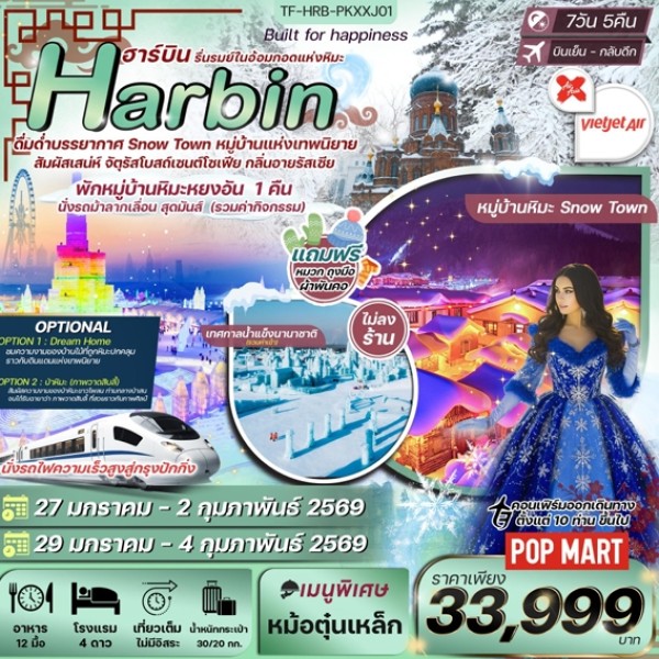 บินตรง ฮาร์บิน เทศกาลแกะสลักน้ำแข็ง หมู่บ้านหิมะ 04 - 09 ก.พ.68