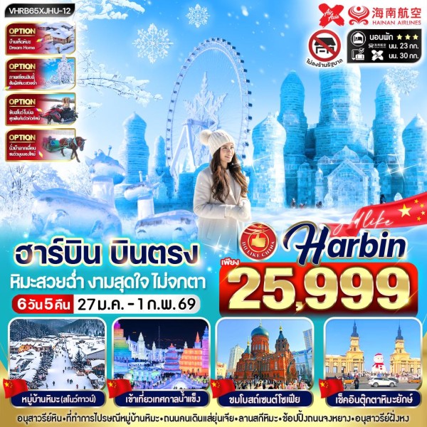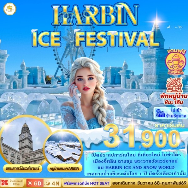 บินตรง ฮาร์บิน เทศกาลแกะสลักน้ำแข็ง หมู่บ้านหิมะ 04 - 09 ก.พ.68