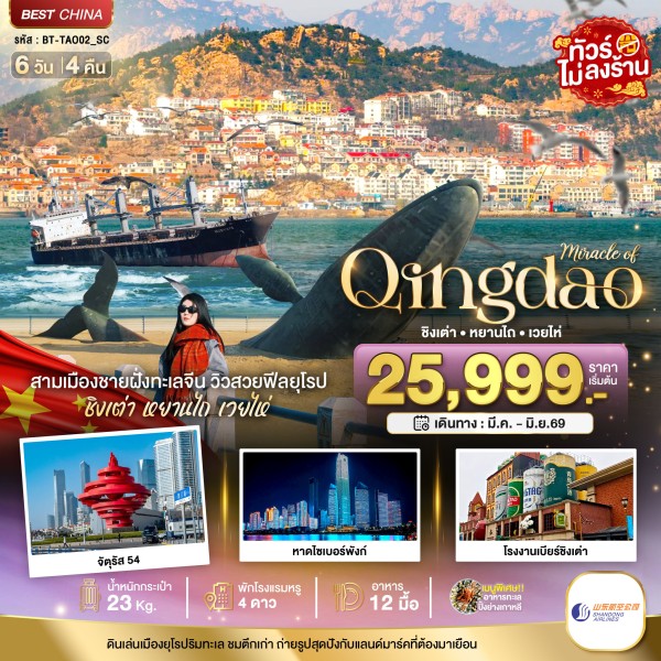ทัวร์จีน ทัซุปตาร์...เที่ยวเมืองมังกรชิงเต่า 5 วัน 4 คืน