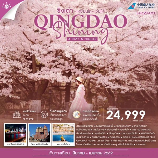 • ทัวร์ชิงเต่า เยียนไห เวยไห่ (ชมสวนซากุระเดือนเมษา)