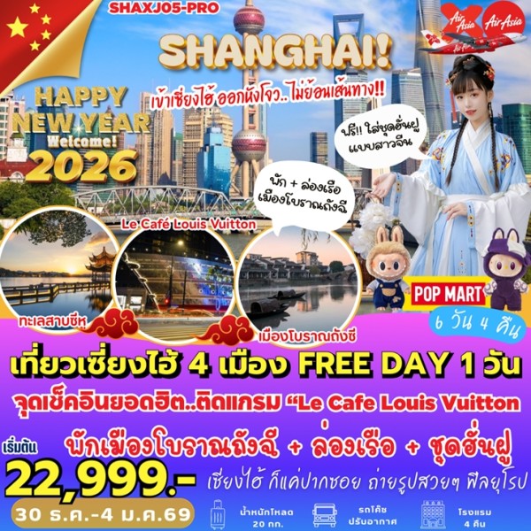 ล่องทะเลสาบซีหู –*หมู่บ้านชาหลงจิ่ง –ซูโจว –สวนโอวหยวน –ถนนโบราณซานถังเจีย - ซูโจว –เซี่ยงไฮ้ –ห้างไทกู่ฮุ่ย –ตึกสตาร์บัค –ตึกหลุยส์ –ถนนนานกิง (POPMART) –หาดไหว่ธาน - *ศูนย์สมุนไพรจีน –เมืองโบราณถังฉี