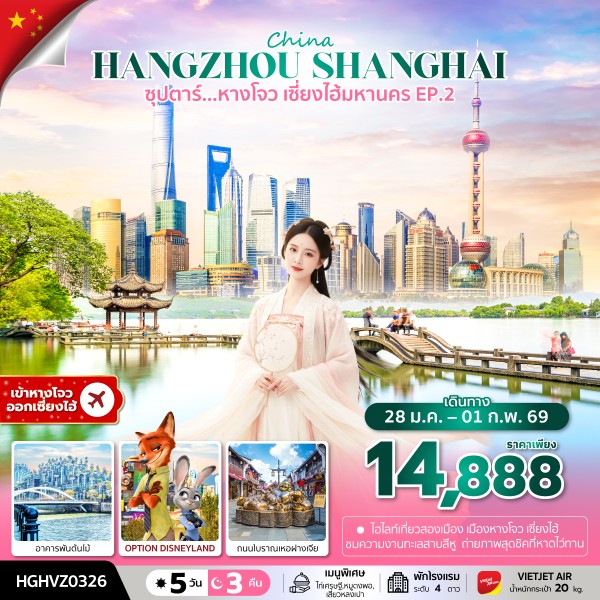 • ทัวร์จีน High Rise in…เซี่ยงไฮ้ หางโจว ซูโจว ถงเซียง