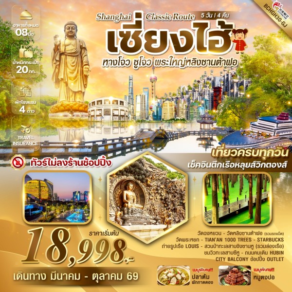 • ทัวร์จีน Shanghai Classic Route เซี่ยงไฮ้ หางโจว ซูโจว พระใหญ่หลิงซานต้าฝอ ทัวร์ไม่ลงร้านช้อป