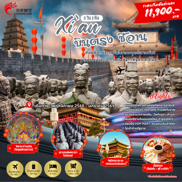 ทัวร์จีน บินตรงซีอาน FREEDAY ไม่ลงร้าน 5 วัน 3 คืน