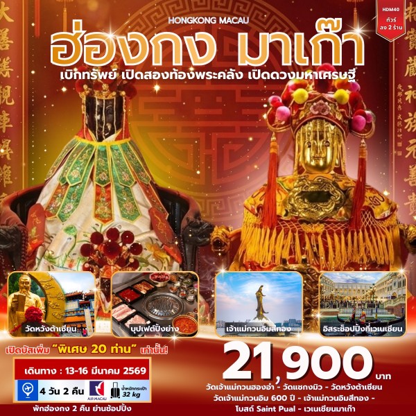• ทัวร์ฮ่องกง ช้อปปิ้งเต็มๆ ฟรีเดย์ 1วัน ไหว้พระ 5 วัดดัง