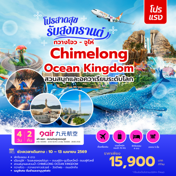 • ทัวร์กวางโจว จูไห่ ตะลุยสวนสนุก CHIMELONG OCEAN KINGDOM