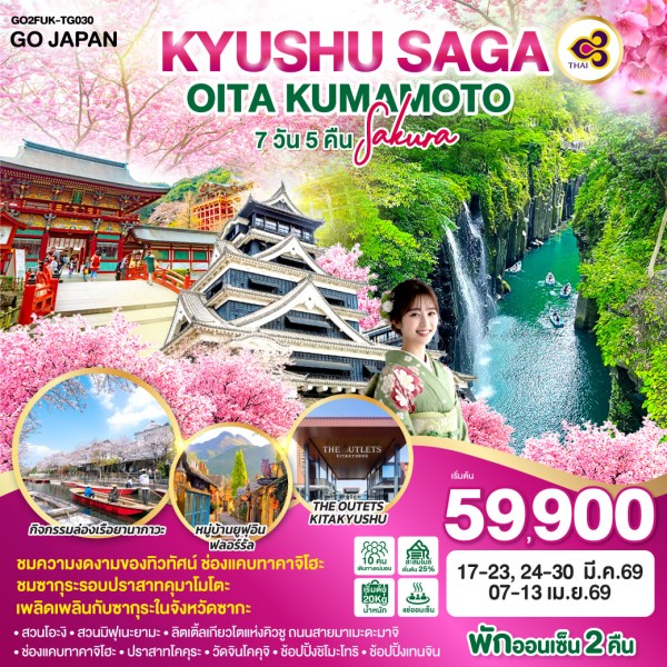 • ทัวร์ญี่ปุ่น KYUSHU SAGA OITA KUMAMOTO SAKURA