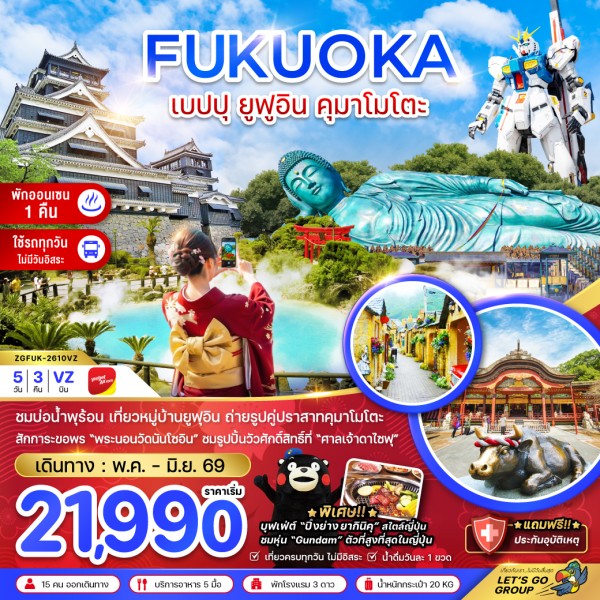 FUKUOKA KUMAMOTO BEPPU 5D3N (เที่ยวเต็ม ไม่มีฟรีเดย์)