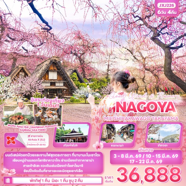 ทัวร์ญี่ปุ่น Feel the Bloom NAGOYA SHIRAKAWAGO TAKAYAMA MIE 5 วัน 3 คืน
