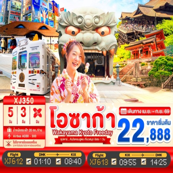 • ทัวร์ญี่ปุ่น OSAKA WAKAYAMA KYOTO FREEDAY ซุปตาร์...คันไซครบสูตร เที่ยวสนุก อิสระ 1 วัน