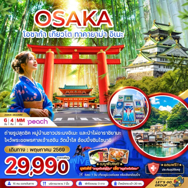 • ทัวร์โอซาก้า เกียวโต ทาคายาม่า อิเนะ (เที่ยวอิสระ 1 วัน)